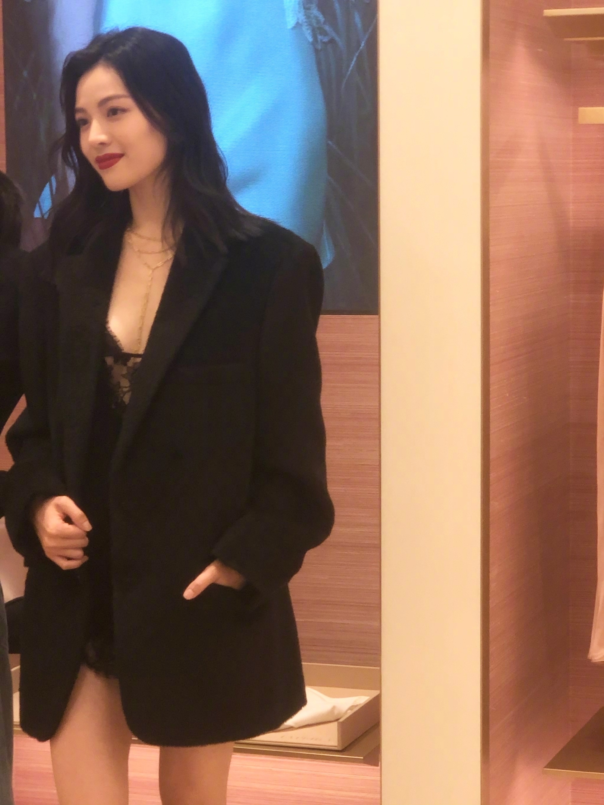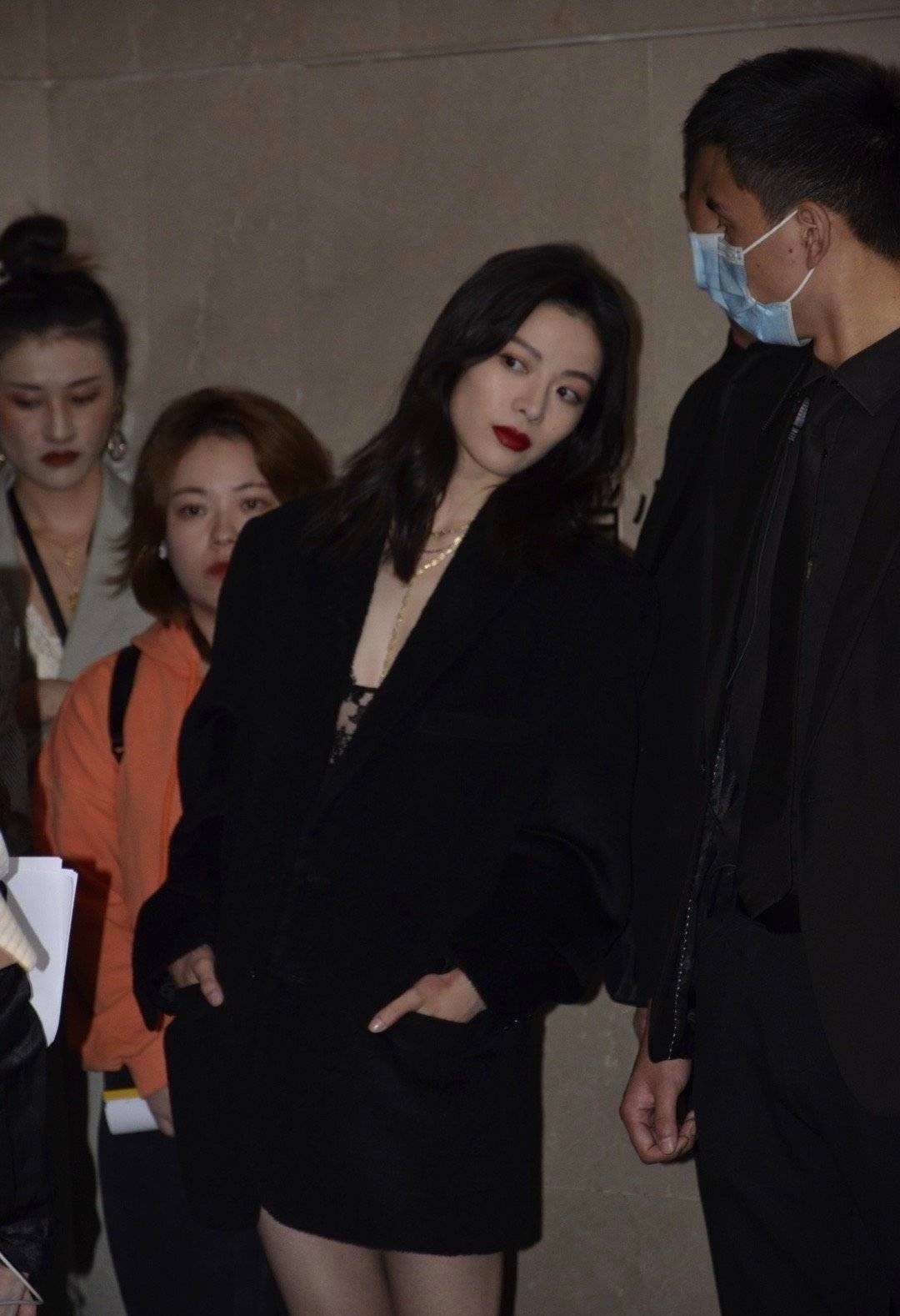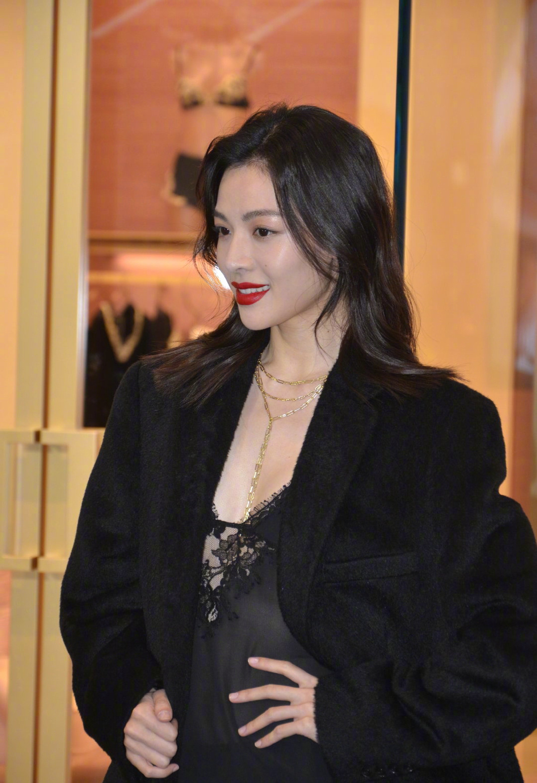 这套我好喜欢,红唇黑衣,西装内搭蕾丝~根本抵挡不住的